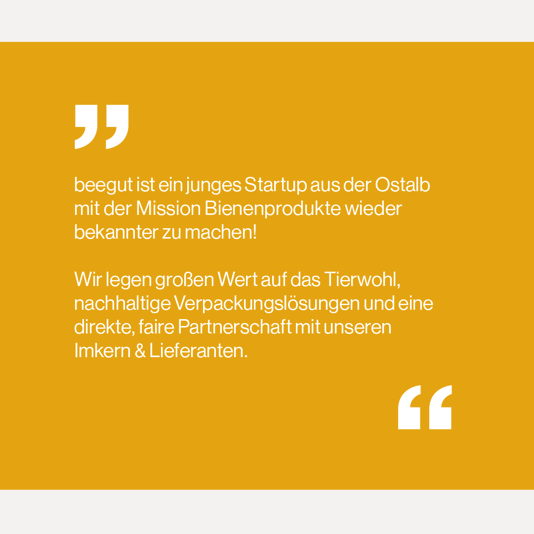 Dazu die Gründer: Wir glauben, dass wir mit der Verbreitung von Wissen über Bienenprodukte langfristig für mehr Bewusstsein & Wertschätzung gegenüber dem kleinsten Nutztier unserer Erde sorgen können.