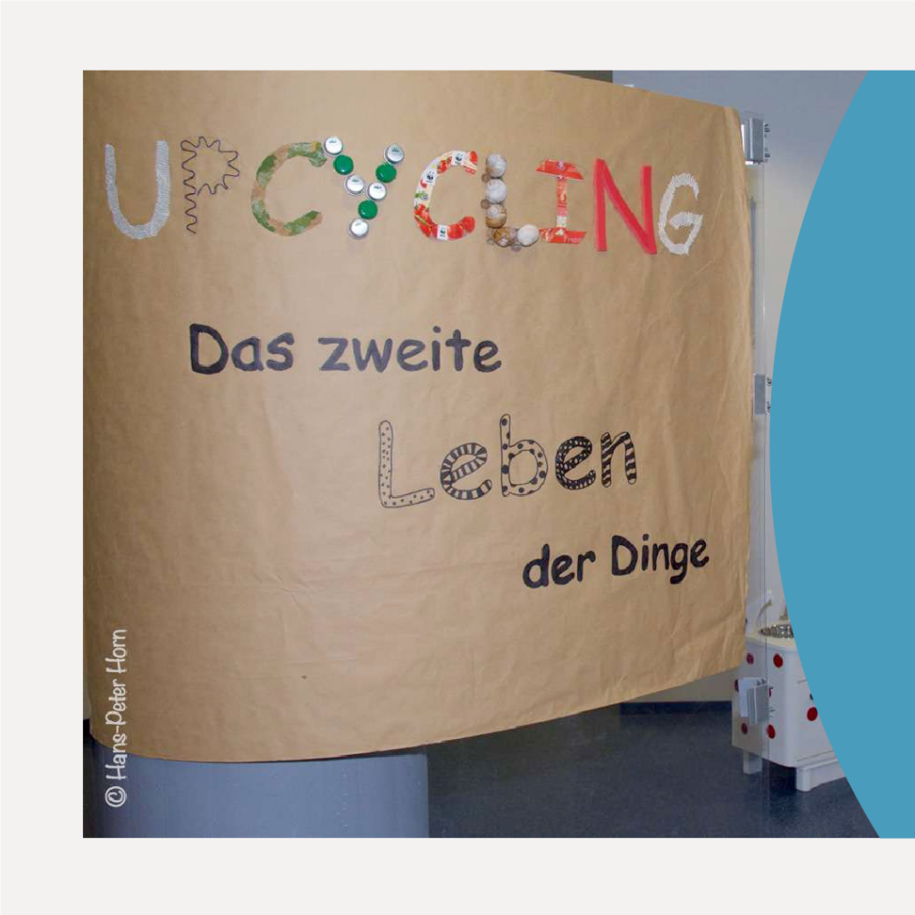 Das Foyer wird von den Partnern für wechselnde Ausstellungen genutzt. So z.B. für eine Mitmach-Ausstellung zum Thema Upcycling
